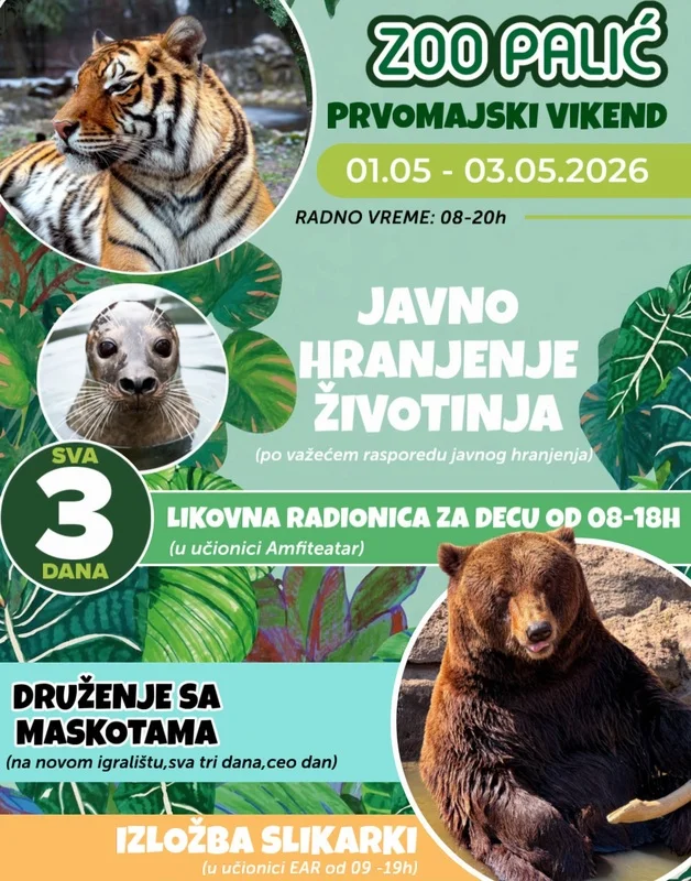Од петка 1. маја до недеље 3. маја , Зоо врт ради продужено – од 8 до 20ч.